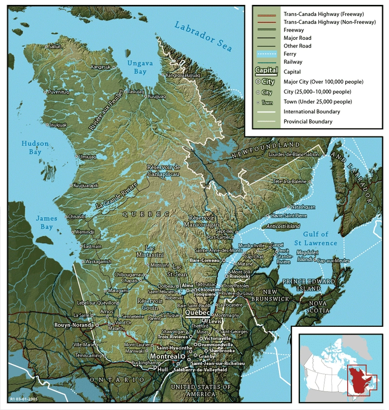 Geographic map of Quebec